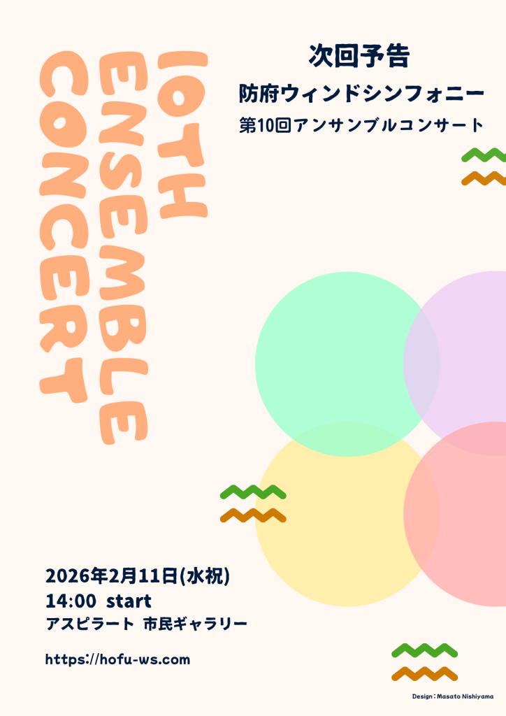 次回の「第10回記念!アンサンブルコンサート」は、来年2026年2月11日(水祝)14時開演