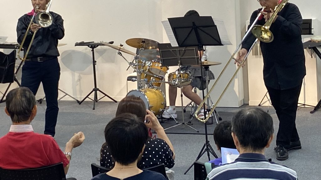 続いてトロンボーンとドラムセットによる三重奏