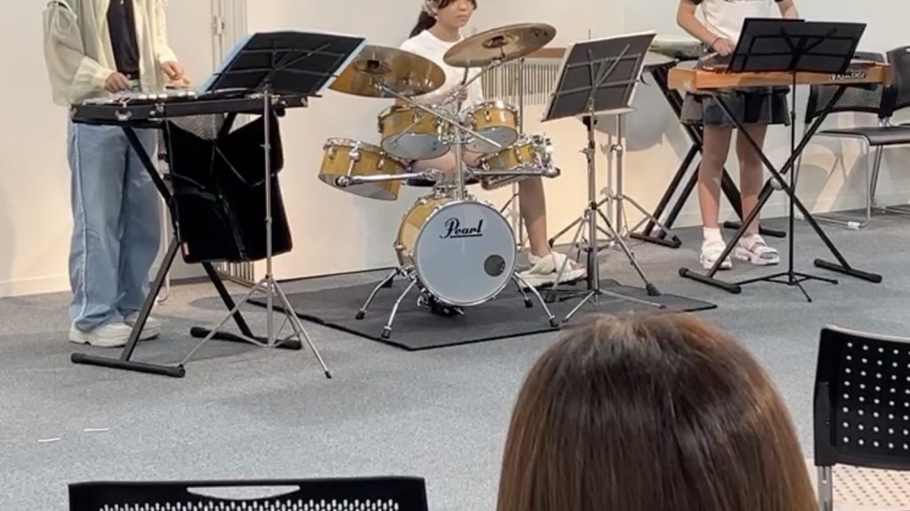 続いてグロッケンとシロフォン(卓上木琴)とドラムセットによる三重奏