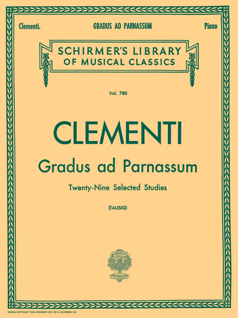 曲名にある「グラドゥス・アド・パルナッスム」は、ピアノを習ってる子供がよく(退屈そうに、でもがんばって)弾くクレメンティの練習曲集の名前