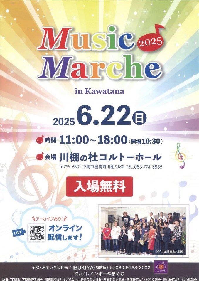 6/22(日)「Music Marche 2025 in Kawatana」川棚温泉でお待ちしてます