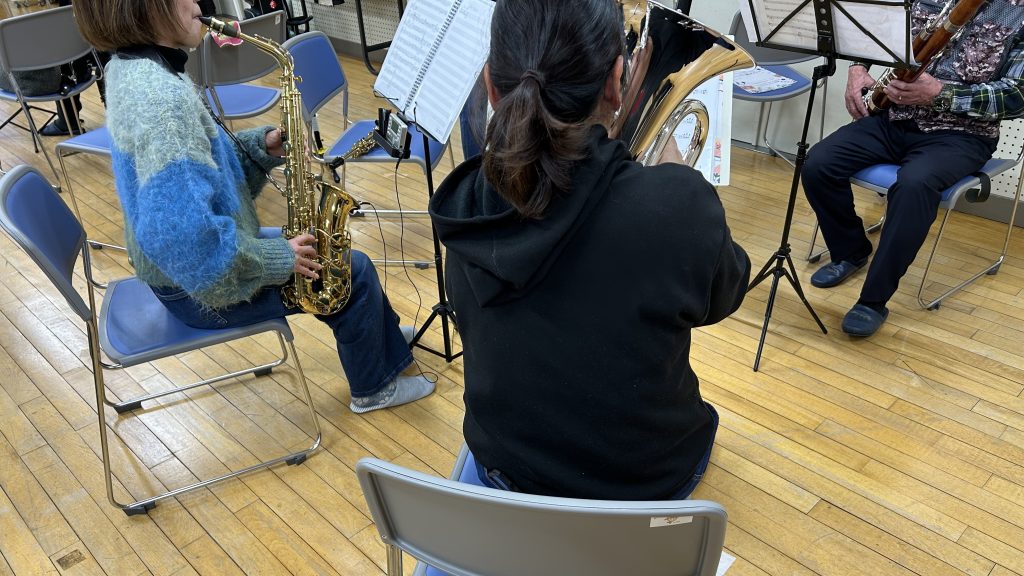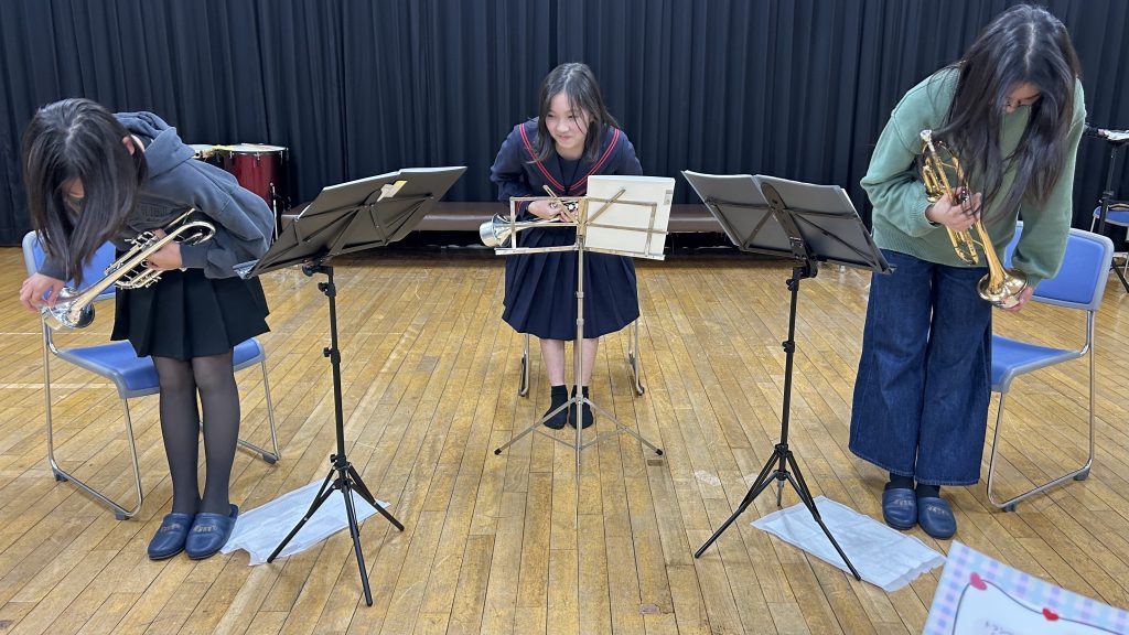 楽器の持ち方が三人三様でおもしろい(揃えなくていいよ)