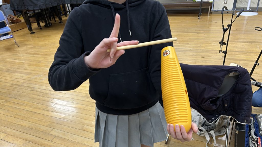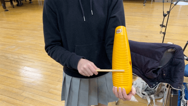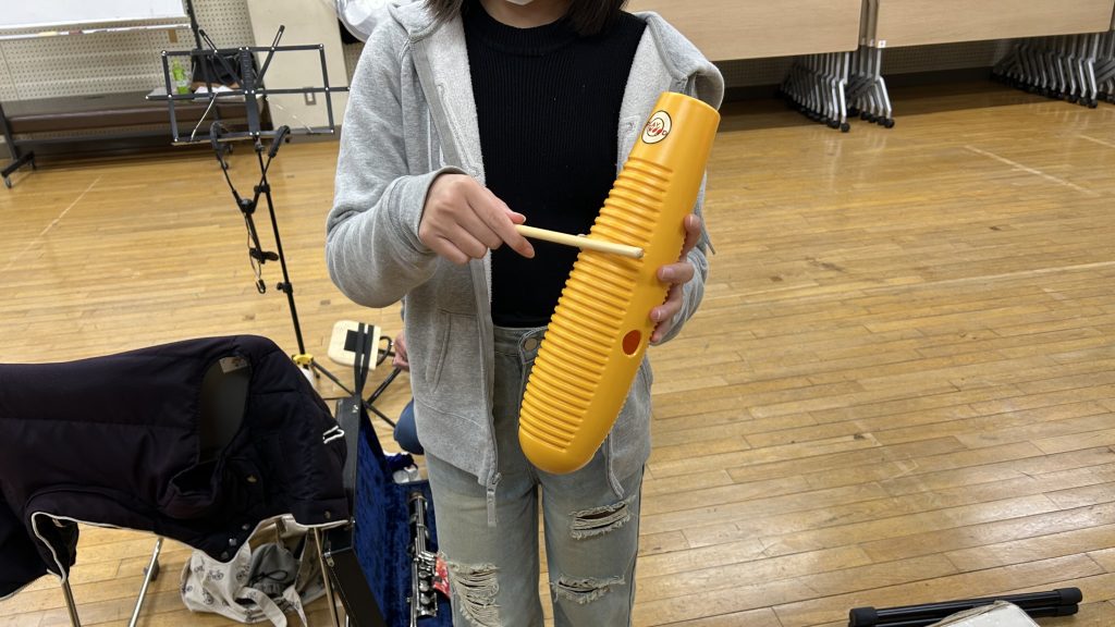 ↑楽団屈指のギロリスト(?)、Yちゃんが演奏するギロ