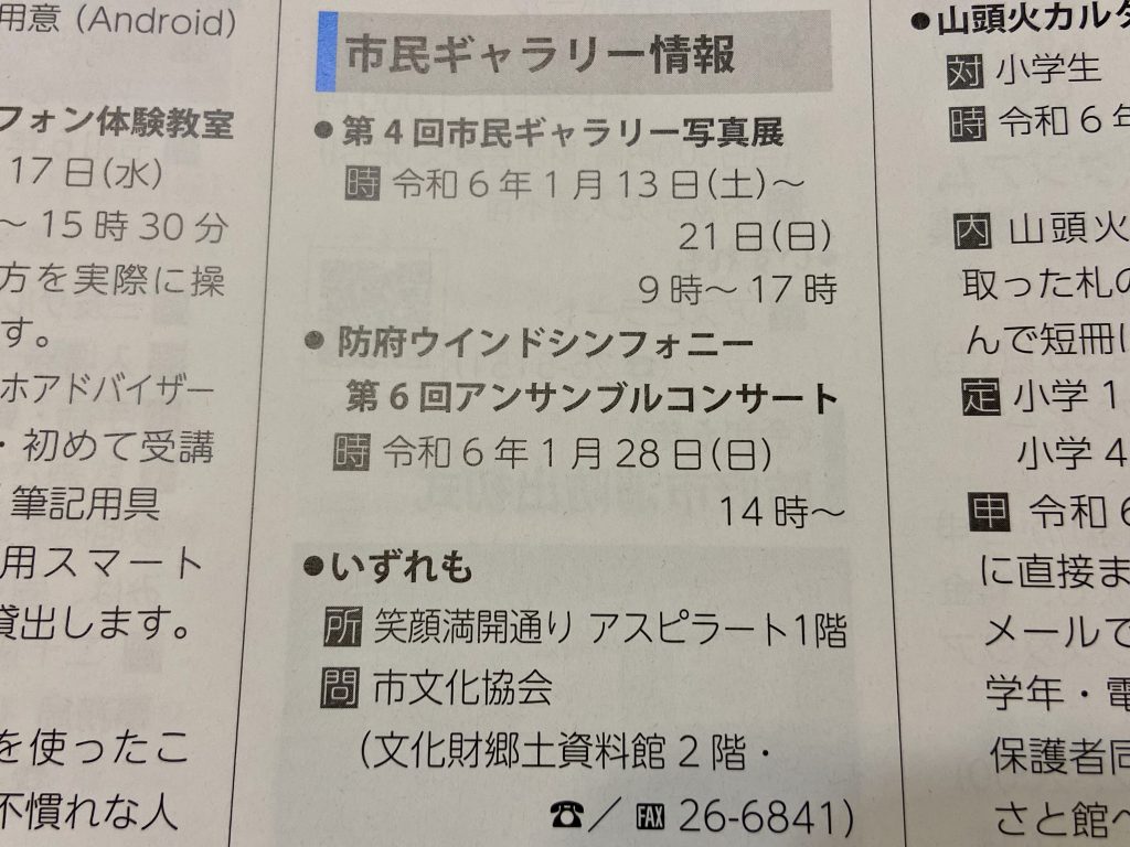 12月に防府市の各家庭に配布された「お知らせ ほうふ 12月号」にも掲載していただけました